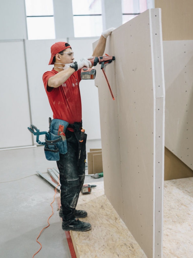 Мастерская «Отделочные работы» предназначена для практического обучения технологиям внутренней отделки зданий, включая возведение конструкций из листовых материалов (ГКЛ, ГВЛ) и металлических профилей, а также выполнение штукатурных и декоративных покрытий.