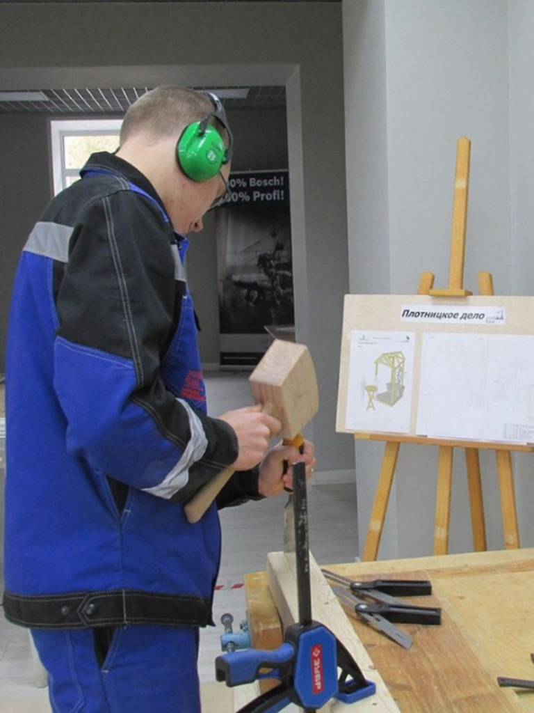 Мастерская «Плотничное дело» предназначена для практического обучения столяров изготовлению и монтажу строительных деревянных конструкций различного назначения — от несущих элементов до декоративных изделий.
