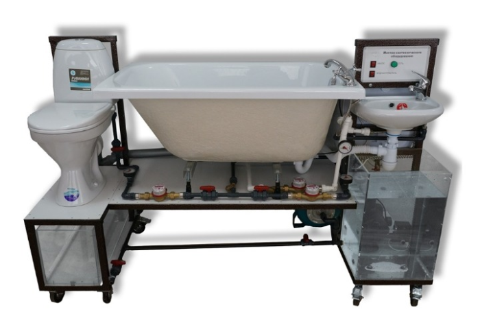 Стенд предназначен для освоения технологии монтажа и подключения сантехнических приборов и систем: линий холодного и горячего водоснабжения, а также линий слива и отвода сточных вод. В процессе работы студенты отрабатывают сборку соединений и установку арматуры, соответствующих требованиям российских стандартов (ГОСТ, СП).