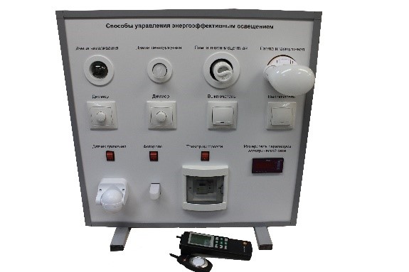 - Обучающий модуль «Энергоэффективное освещение» — набор источников света с диммирующими устройствами, включающий: