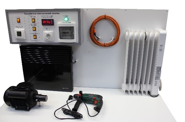 - Модуль «Потребители электрической энергии» — учебный комплект с набором электроприборов, имеющих различные энергетические характеристики