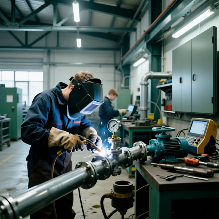 Здесь студенты работают с настоящими инструментами и материалами, отрабатывая профессиональные движения до автоматизма: монтируют трубопроводы, настраивают насосные установки, изучают системы фильтрации и диагностируют утечки.