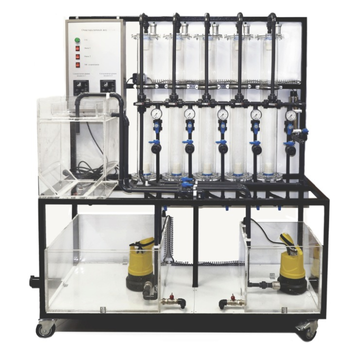 Лабораторный стенд «Очистка сточных вод» предназначен для изучения основных этапов и технологических элементов процесса очистки сточных вод. Стенд воспроизводит последовательную цепочку очистки — от механической до физико-химической и дезинфекции, что позволяет наглядно проследить изменение качества воды на каждом этапе.